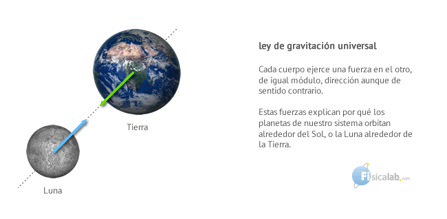 Esta ley establece que los cuerpos, por el simple hecho de tener masa, experimentan una fuerza de atracci贸n hacia otros cuerpos con masa, denominada fuerza gravitatoria o fuerza gravitacional. Esta fuerza, explica entre otras muchas cosas, por qu茅 orbitan los planetas.